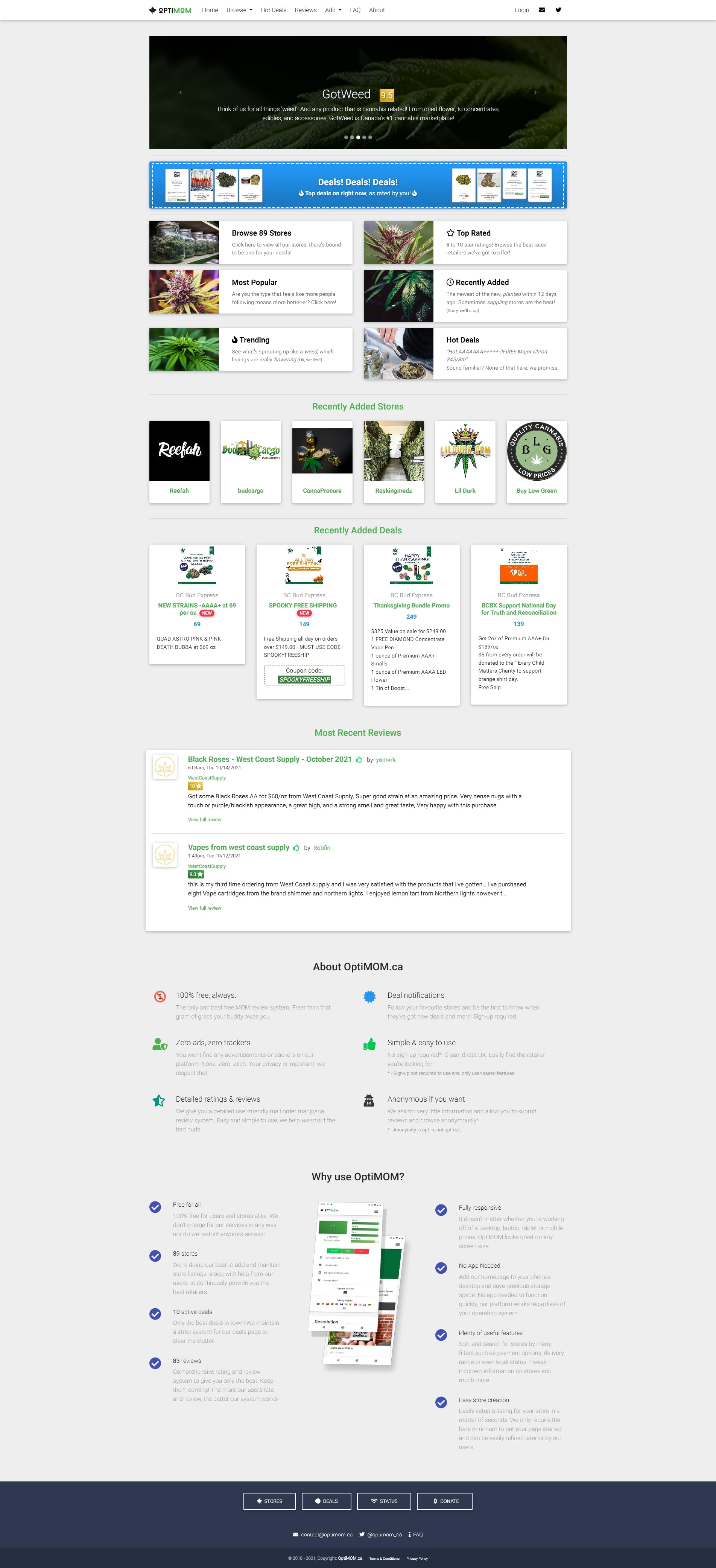 OptiMOM is a free aggregator of mail order marijuana providers, allowing users to post sites in which you can purchase cannabis legally.